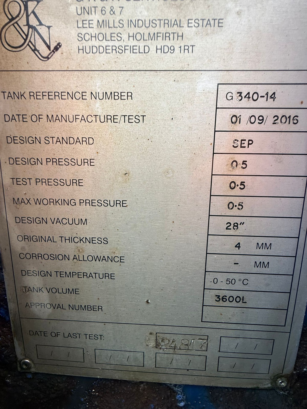 GKN built, Stainless steel tank